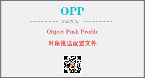 以上为Object Push Profile英文缩略词OPP的中文解释,以及该英文缩写在英语的流行度、分类和应用领域方面的信息。