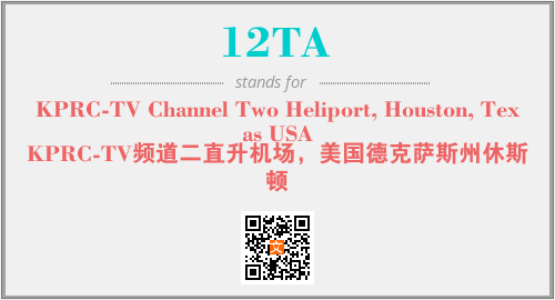 上述内容是“KPRC-TV Channel Two Heliport, Houston, Texas USA”作为“12TA”的缩写,解释为“KPRC-TV频道二直升机场,美国德克萨斯州休斯顿”时的信息,以及英文缩略词12TA所代表的英文单词,其对应的中文拼音、详细解释以及在英文中的流行度和相关分类、应用领域及应用示例等。