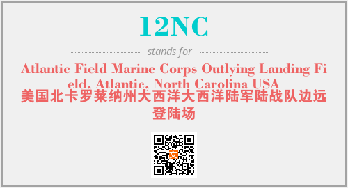 上述内容是“Atlantic Field Marine Corps Outlying Landing Field, Atlantic, North Carolina USA”作为“12NC”的缩写,解释为“美国北卡罗莱纳州大西洋大西洋陆军陆战队边远登陆场”时的信息,以及英文缩略词12NC所代表的英文单词,其对应的中文拼音、详细解释以及在英文中的流行度和相关分类、应用领域及应用示例等。