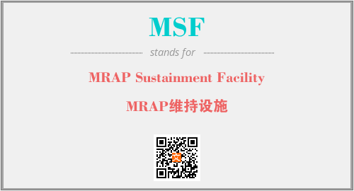上述内容是“MRAP Sustainment Facility”作为“MSF”的缩写,解释为“MRAP维持设施”时的信息,以及英文缩略词MSF所代表的英文单词,其对应的中文拼音、详细解释以及在英文中的流行度和相关分类、应用领域及应用示例等。