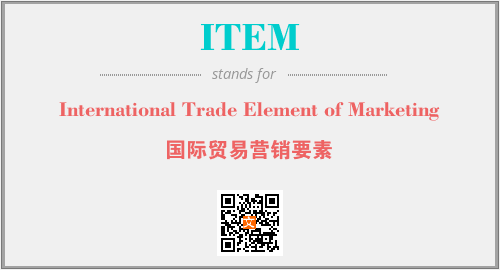 上述内容是“International Trade Element of Marketing”作为“ITEM”的缩写,解释为“国际贸易营销要素”时的信息,以及英文缩略词ITEM所代表的英文单词,其对应的中文拼音、详细解释以及在英文中的流行度和相关分类、应用领域及应用示例等。
