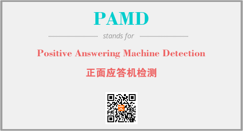 英文缩略词“PAMD”经常作为“Positive Answering Machine Detection”的英文缩写来使用,中文表示:“正面应答机检测”。本文将详细介绍英文缩写词PAMD所代表英文单词,其对应的中文拼音、详细解释以及在英语中的流行度。此外,还有关于缩略词PAMD的分类、应用领域及相关应用示例等。