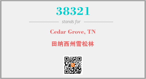 上述内容是“Cedar Grove, TN”作为“38321”的缩写,解释为“田纳西州雪松林”时的信息,以及英文缩略词38321所代表的英文单词,其对应的中文拼音、详细解释以及在英文中的流行度和相关分类、应用领域及应用示例等。