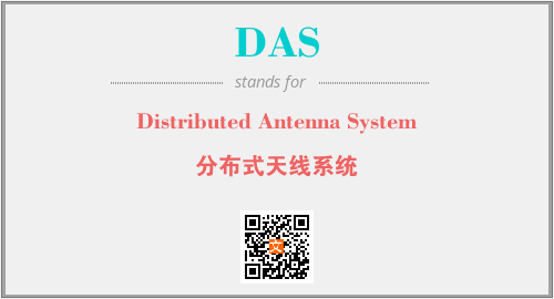 上述内容是“Distributed Antenna System”作为“DAS”的缩写,解释为“分布式天线系统”时的信息,以及英文缩略词DAS所代表的英文单词,其对应的中文拼音、详细解释以及在英文中的流行度和相关分类、应用领域及应用示例等。