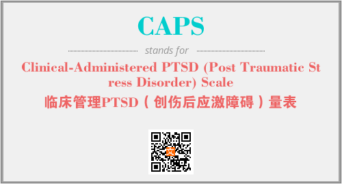 上述内容是“Clinical-Administered PTSD (Post Traumatic Stress Disorder) Scale”作为“CAPS”的缩写,解释为“临床管理PTSD(创伤后应激障碍)量表”时的信息,以及英文缩略词CAPS所代表的英文单词,其对应的中文拼音、详细解释以及在英文中的流行度和相关分类、应用领域及应用示例等。