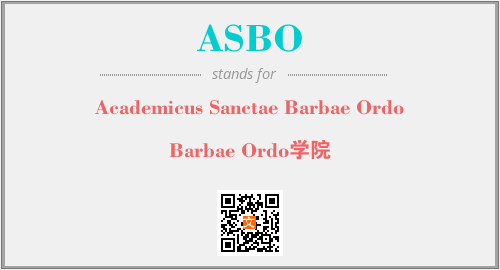 英文缩略词“ASBO”经常作为“Academicus Sanctae Barbae Ordo”的英文缩写来使用,中文表示:“Barbae Ordo学院”。本文将详细介绍英文缩写词ASBO所代表英文单词,其对应的中文拼音、详细解释以及在英语中的流行度。此外,还有关于缩略词ASBO的分类、应用领域及相关应用示例等。