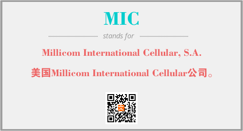 上述内容是“Millicom International Cellular, S.A.”作为“MIC”的缩写,解释为“美国Millicom International Cellular公司。”时的信息,以及英文缩略词MIC所代表的英文单词,其对应的中文拼音、详细解释以及在英文中的流行度和相关分类、应用领域及应用示例等。