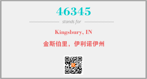 上述内容是“Kingsbury, IN”作为“46345”的缩写,解释为“金斯伯里,伊利诺伊州”时的信息,以及英文缩略词46345所代表的英文单词,其对应的中文拼音、详细解释以及在英文中的流行度和相关分类、应用领域及应用示例等。
