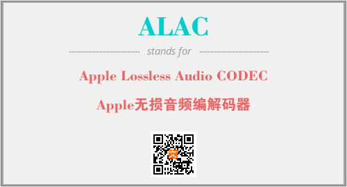 英文缩略词“ALAC”经常作为“Apple Lossless Audio CODEC”的英文缩写来使用,中文表示:“Apple无损音频编解码器”。本文将详细介绍英文缩写词ALAC所代表英文单词,其对应的中文拼音、详细解释以及在英语中的流行度。此外,还有关于缩略词ALAC的分类、应用领域及相关应用示例等。
