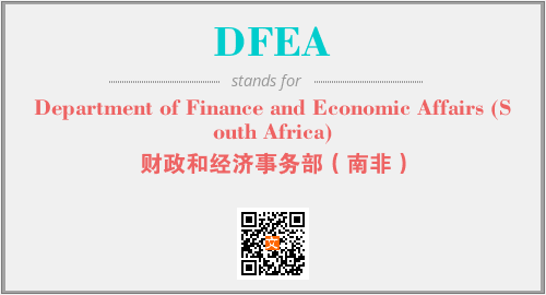 以上为Department of Finance and Economic Affairs (South Africa)英文缩略词DFEA的中文解释,以及该英文缩写在英语的流行度、分类和应用领域方面的信息。