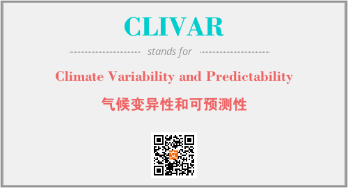 上述内容是“Climate Variability and Predictability”作为“CLIVAR”的缩写,解释为“气候变异性和可预测性”时的信息,以及英文缩略词CLIVAR所代表的英文单词,其对应的中文拼音、详细解释以及在英文中的流行度和相关分类、应用领域及应用示例等。