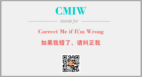 上述内容是“Correct Me if I\'m Wrong”作为“CMIW”的缩写,解释为“如果我错了,请纠正我”时的信息,以及英文缩略词CMIW所代表的英文单词,其对应的中文拼音、详细解释以及在英文中的流行度和相关分类、应用领域及应用示例等。