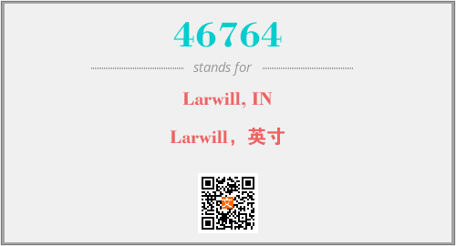 上述内容是“Larwill, IN”作为“46764”的缩写,解释为“Larwill,英寸”时的信息,以及英文缩略词46764所代表的英文单词,其对应的中文拼音、详细解释以及在英文中的流行度和相关分类、应用领域及应用示例等。