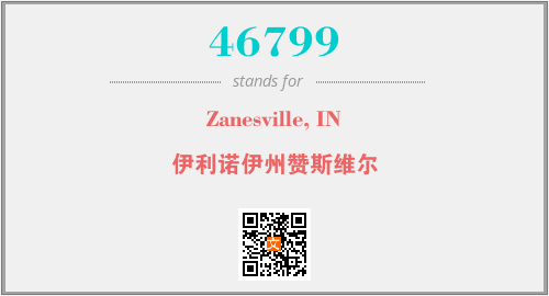 上述内容是“Zanesville, IN”作为“46799”的缩写,解释为“伊利诺伊州赞斯维尔”时的信息,以及英文缩略词46799所代表的英文单词,其对应的中文拼音、详细解释以及在英文中的流行度和相关分类、应用领域及应用示例等。