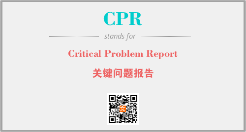 英文缩略词“CPR”经常作为“Critical Problem Report”的英文缩写来使用,中文表示:“关键问题报告”。本文将详细介绍英文缩写词CPR所代表英文单词,其对应的中文拼音、详细解释以及在英语中的流行度。此外,还有关于缩略词CPR的分类、应用领域及相关应用示例等。