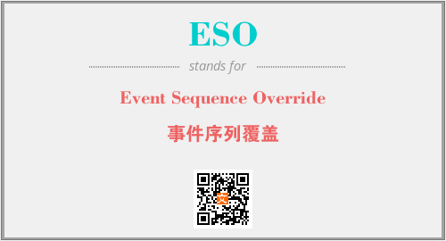 英文缩略词“ESO”经常作为“Event Sequence Override”的英文缩写来使用,中文表示:“事件序列覆盖”。本文将详细介绍英文缩写词ESO所代表英文单词,其对应的中文拼音、详细解释以及在英语中的流行度。此外,还有关于缩略词ESO的分类、应用领域及相关应用示例等。