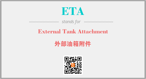 英文缩略词“ETA”经常作为“External Tank Attachment”的英文缩写来使用,中文表示:“外部油箱附件”。本文将详细介绍英文缩写词ETA所代表英文单词,其对应的中文拼音、详细解释以及在英语中的流行度。此外,还有关于缩略词ETA的分类、应用领域及相关应用示例等。