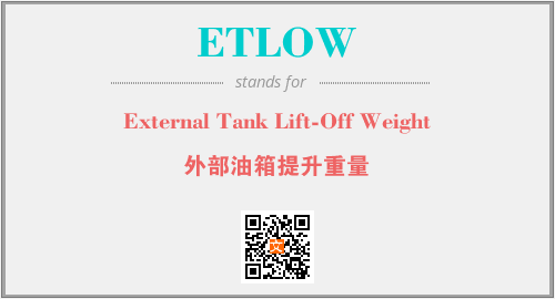 英文缩略词“ETLOW”经常作为“External Tank Lift-Off Weight”的英文缩写来使用,中文表示:“外部油箱提升重量”。本文将详细介绍英文缩写词ETLOW所代表英文单词,其对应的中文拼音、详细解释以及在英语中的流行度。此外,还有关于缩略词ETLOW的分类、应用领域及相关应用示例等。