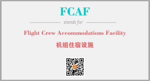上述内容是“Flight Crew Accommodations Facility”作为“FCAF”的缩写,解释为“机组住宿设施”时的信息,以及英文缩略词FCAF所代表的英文单词,其对应的中文拼音、详细解释以及在英文中的流行度和相关分类、应用领域及应用示例等。