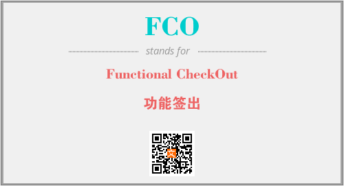 英文缩略词“FCO”经常作为“Functional CheckOut”的英文缩写来使用,中文表示:“功能签出”。本文将详细介绍英文缩写词FCO所代表英文单词,其对应的中文拼音、详细解释以及在英语中的流行度。此外,还有关于缩略词FCO的分类、应用领域及相关应用示例等。
