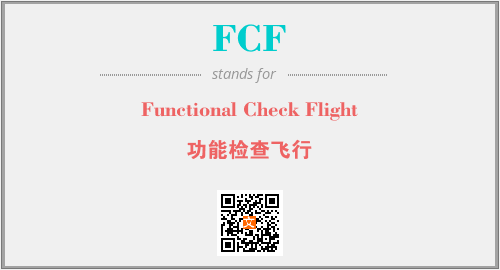 英文缩略词“FCF”经常作为“Functional Check Flight”的英文缩写来使用,中文表示:“功能检查飞行”。本文将详细介绍英文缩写词FCF所代表英文单词,其对应的中文拼音、详细解释以及在英语中的流行度。此外,还有关于缩略词FCF的分类、应用领域及相关应用示例等。