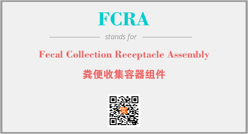 上述内容是“Fecal Collection Receptacle Assembly”作为“FCRA”的缩写,解释为“粪便收集容器组件”时的信息,以及英文缩略词FCRA所代表的英文单词,其对应的中文拼音、详细解释以及在英文中的流行度和相关分类、应用领域及应用示例等。
