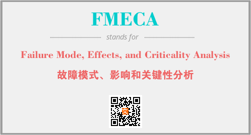 英文缩略词“FMECA”经常作为“Failure Mode, Effects, and Criticality Analysis”的英文缩写来使用,中文表示:“故障模式、影响和关键性分析”。本文将详细介绍英文缩写词FMECA所代表英文单词,其对应的中文拼音、详细解释以及在英语中的流行度。此外,还有关于缩略词FMECA的分类、应用领域及相关应用示例等。