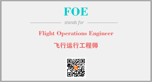 上述内容是“Flight Operations Engineer”作为“FOE”的缩写,解释为“飞行运行工程师”时的信息,以及英文缩略词FOE所代表的英文单词,其对应的中文拼音、详细解释以及在英文中的流行度和相关分类、应用领域及应用示例等。