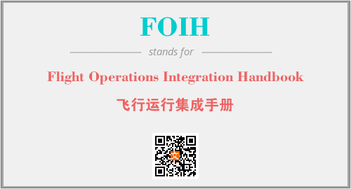 上述内容是“Flight Operations Integration Handbook”作为“FOIH”的缩写,解释为“飞行运行集成手册”时的信息,以及英文缩略词FOIH所代表的英文单词,其对应的中文拼音、详细解释以及在英文中的流行度和相关分类、应用领域及应用示例等。