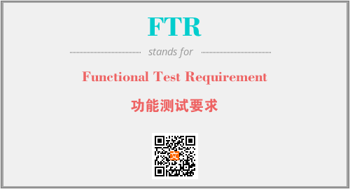 英文缩略词“FTR”经常作为“Functional Test Requirement”的英文缩写来使用,中文表示:“功能测试要求”。本文将详细介绍英文缩写词FTR所代表英文单词,其对应的中文拼音、详细解释以及在英语中的流行度。此外,还有关于缩略词FTR的分类、应用领域及相关应用示例等。