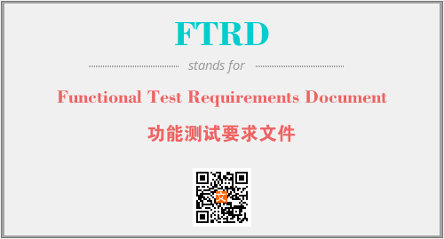 英文缩略词“FTRD”经常作为“Functional Test Requirements Document”的英文缩写来使用,中文表示:“功能测试要求文件”。本文将详细介绍英文缩写词FTRD所代表英文单词,其对应的中文拼音、详细解释以及在英语中的流行度。此外,还有关于缩略词FTRD的分类、应用领域及相关应用示例等。