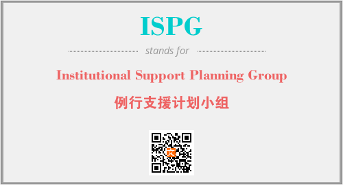 上述内容是“Institutional Support Planning Group”作为“ISPG”的缩写,解释为“例行支援计划小组”时的信息,以及英文缩略词ISPG所代表的英文单词,其对应的中文拼音、详细解释以及在英文中的流行度和相关分类、应用领域及应用示例等。