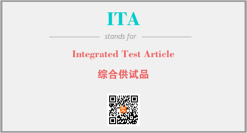 英文缩略词“ITA”经常作为“Integrated Test Article”的英文缩写来使用,中文表示:“综合供试品”。本文将详细介绍英文缩写词ITA所代表英文单词,其对应的中文拼音、详细解释以及在英语中的流行度。此外,还有关于缩略词ITA的分类、应用领域及相关应用示例等。