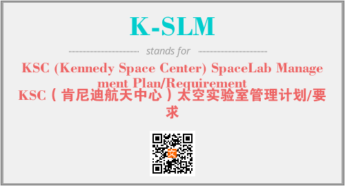 上述内容是“KSC (Kennedy Space Center) SpaceLab Management Plan/Requirement”作为“K-SLM”的缩写,解释为“KSC(肯尼迪航天中心)太空实验室管理计划/要求”时的信息,以及英文缩略词K-SLM所代表的英文单词,其对应的中文拼音、详细解释以及在英文中的流行度和相关分类、应用领域及应用示例等。