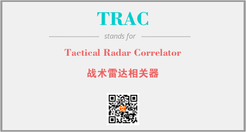 上述内容是“Tactical Radar Correlator”作为“TRAC”的缩写,解释为“战术雷达相关器”时的信息,以及英文缩略词TRAC所代表的英文单词,其对应的中文拼音、详细解释以及在英文中的流行度和相关分类、应用领域及应用示例等。