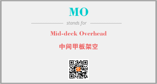 英文缩略词“MO”经常作为“Mid-deck Overhead”的英文缩写来使用,中文表示:“中间甲板架空”。本文将详细介绍英文缩写词MO所代表英文单词,其对应的中文拼音、详细解释以及在英语中的流行度。此外,还有关于缩略词MO的分类、应用领域及相关应用示例等。