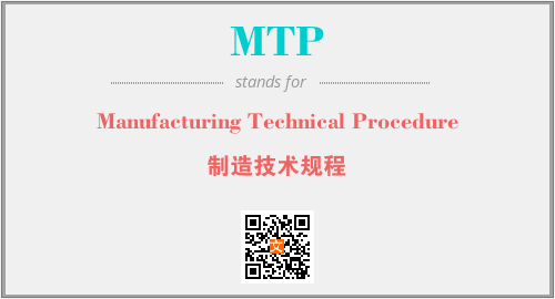 英文缩略词“MTP”经常作为“Manufacturing Technical Procedure”的英文缩写来使用,中文表示:“制造技术规程”。本文将详细介绍英文缩写词MTP所代表英文单词,其对应的中文拼音、详细解释以及在英语中的流行度。此外,还有关于缩略词MTP的分类、应用领域及相关应用示例等。