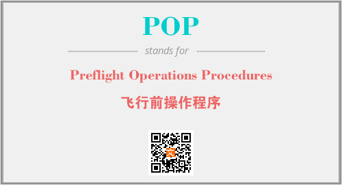 英文缩略词“POP”经常作为“Preflight Operations Procedures”的英文缩写来使用,中文表示:“飞行前操作程序”。本文将详细介绍英文缩写词POP所代表英文单词,其对应的中文拼音、详细解释以及在英语中的流行度。此外,还有关于缩略词POP的分类、应用领域及相关应用示例等。