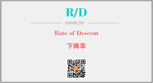 上述内容是“Rate of Descent”作为“R/D”的缩写,解释为“下降率”时的信息,以及英文缩略词R/D所代表的英文单词,其对应的中文拼音、详细解释以及在英文中的流行度和相关分类、应用领域及应用示例等。