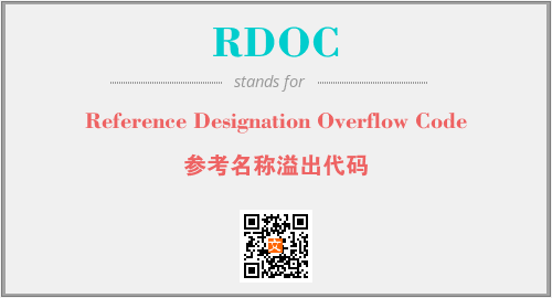 上述内容是“Reference Designation Overflow Code”作为“RDOC”的缩写,解释为“参考名称溢出代码”时的信息,以及英文缩略词RDOC所代表的英文单词,其对应的中文拼音、详细解释以及在英文中的流行度和相关分类、应用领域及应用示例等。