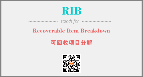 上述内容是“Recoverable Item Breakdown”作为“RIB”的缩写,解释为“可回收项目分解”时的信息,以及英文缩略词RIB所代表的英文单词,其对应的中文拼音、详细解释以及在英文中的流行度和相关分类、应用领域及应用示例等。