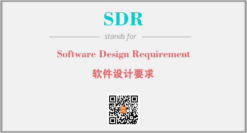 英文缩略词“SDR”经常作为“Software Design Requirement”的英文缩写来使用,中文表示:“软件设计要求”。本文将详细介绍英文缩写词SDR所代表英文单词,其对应的中文拼音、详细解释以及在英语中的流行度。此外,还有关于缩略词SDR的分类、应用领域及相关应用示例等。