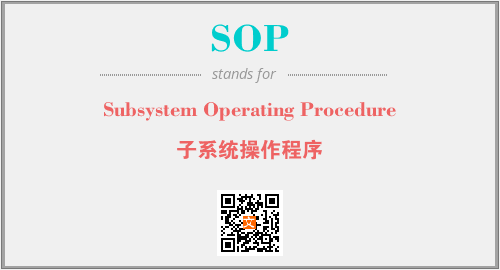 上述内容是“Subsystem Operating Procedure”作为“SOP”的缩写,解释为“子系统操作程序”时的信息,以及英文缩略词SOP所代表的英文单词,其对应的中文拼音、详细解释以及在英文中的流行度和相关分类、应用领域及应用示例等。