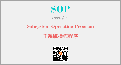 英文缩略词“SOP”经常作为“Subsystem Operating Program”的英文缩写来使用,中文表示:“子系统操作程序”。本文将详细介绍英文缩写词SOP所代表英文单词,其对应的中文拼音、详细解释以及在英语中的流行度。此外,还有关于缩略词SOP的分类、应用领域及相关应用示例等。