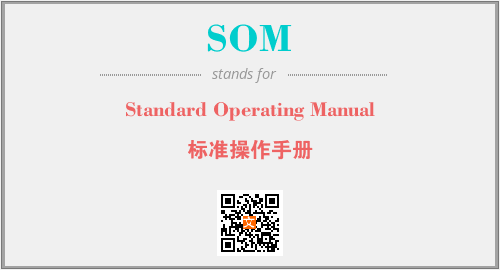 英文缩略词“SOM”经常作为“Standard Operating Manual”的英文缩写来使用,中文表示:“标准操作手册”。本文将详细介绍英文缩写词SOM所代表英文单词,其对应的中文拼音、详细解释以及在英语中的流行度。此外,还有关于缩略词SOM的分类、应用领域及相关应用示例等。