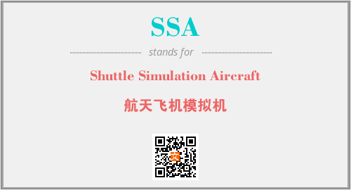 英文缩略词“SSA”经常作为“Shuttle Simulation Aircraft”的英文缩写来使用,中文表示:“航天飞机模拟机”。本文将详细介绍英文缩写词SSA所代表英文单词,其对应的中文拼音、详细解释以及在英语中的流行度。此外,还有关于缩略词SSA的分类、应用领域及相关应用示例等。