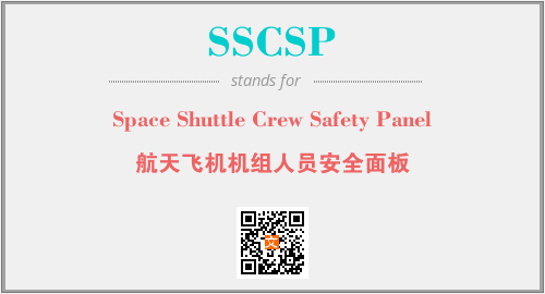 上述内容是“Space Shuttle Crew Safety Panel”作为“SSCSP”的缩写,解释为“航天飞机机组人员安全面板”时的信息,以及英文缩略词SSCSP所代表的英文单词,其对应的中文拼音、详细解释以及在英文中的流行度和相关分类、应用领域及应用示例等。