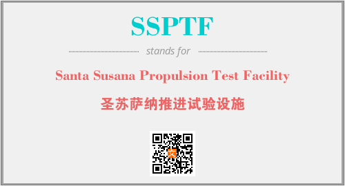 上述内容是“Santa Susana Propulsion Test Facility”作为“SSPTF”的缩写,解释为“圣苏萨纳推进试验设施”时的信息,以及英文缩略词SSPTF所代表的英文单词,其对应的中文拼音、详细解释以及在英文中的流行度和相关分类、应用领域及应用示例等。