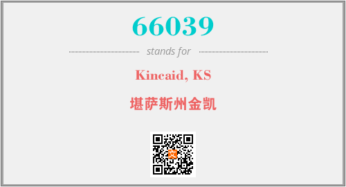 上述内容是“Kincaid, KS”作为“66039”的缩写,解释为“堪萨斯州金凯”时的信息,以及英文缩略词66039所代表的英文单词,其对应的中文拼音、详细解释以及在英文中的流行度和相关分类、应用领域及应用示例等。