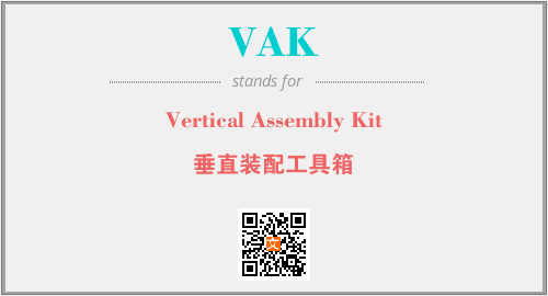 上述内容是“Vertical Assembly Kit”作为“VAK”的缩写,解释为“垂直装配工具箱”时的信息,以及英文缩略词VAK所代表的英文单词,其对应的中文拼音、详细解释以及在英文中的流行度和相关分类、应用领域及应用示例等。